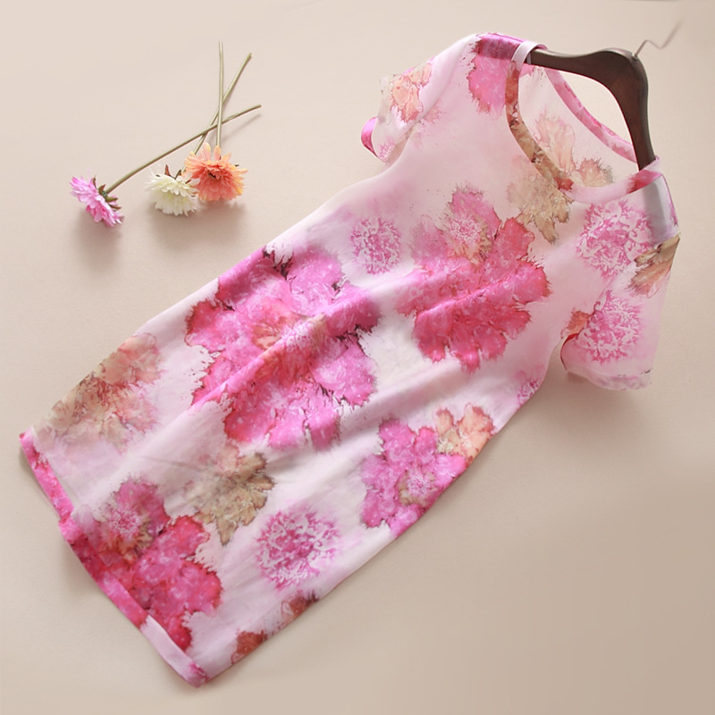 簡介: 貨源類別現(xiàn)貨 主圖來源實拍無模特 風格歐美 圖案花朵 工藝無 款式基本款 組合形式單件 裙長中長裙 領型圓領 袖型常規(guī)袖 袖長短袖 腰型中腰 衣門襟套頭 上市年份/季節(jié)2015夏季 面料名稱歐根紗 主面料成分桑蠶絲 主面料成分的含量95(%) 貨號Q2015093 品牌果緞 顏色玫紅大花