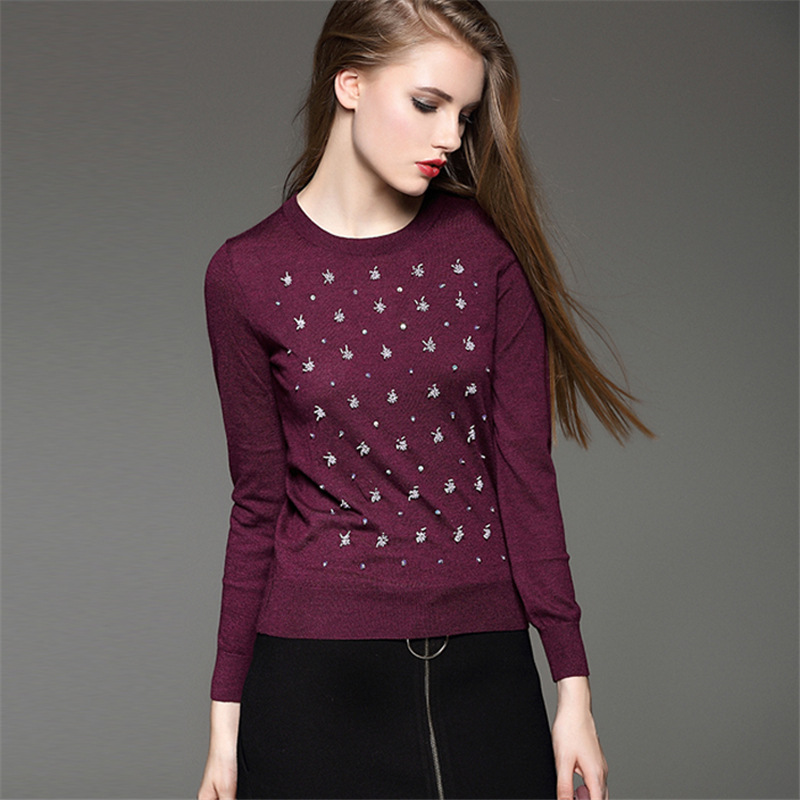 女羊絨衫純羊絨 歐美女裝羊毛針織衫 高檔羊絨打底衫釘珠純色上衣 /