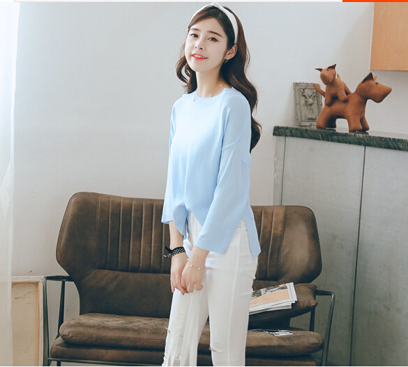 2015新款女裝針織衫糖果色百搭前短后長套頭純色針織上衣淘寶爆款 /