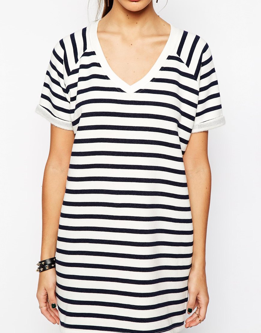 2015歐洲站夏季歐美熱銷爆款學院風V領條紋寬松連衣裙 /