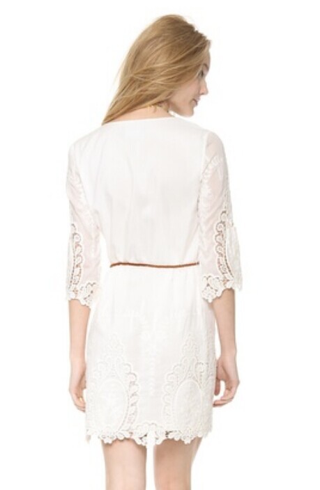 外貿爆款 甜美百搭鏤空刺繡花邊連衣裙送腰帶 /