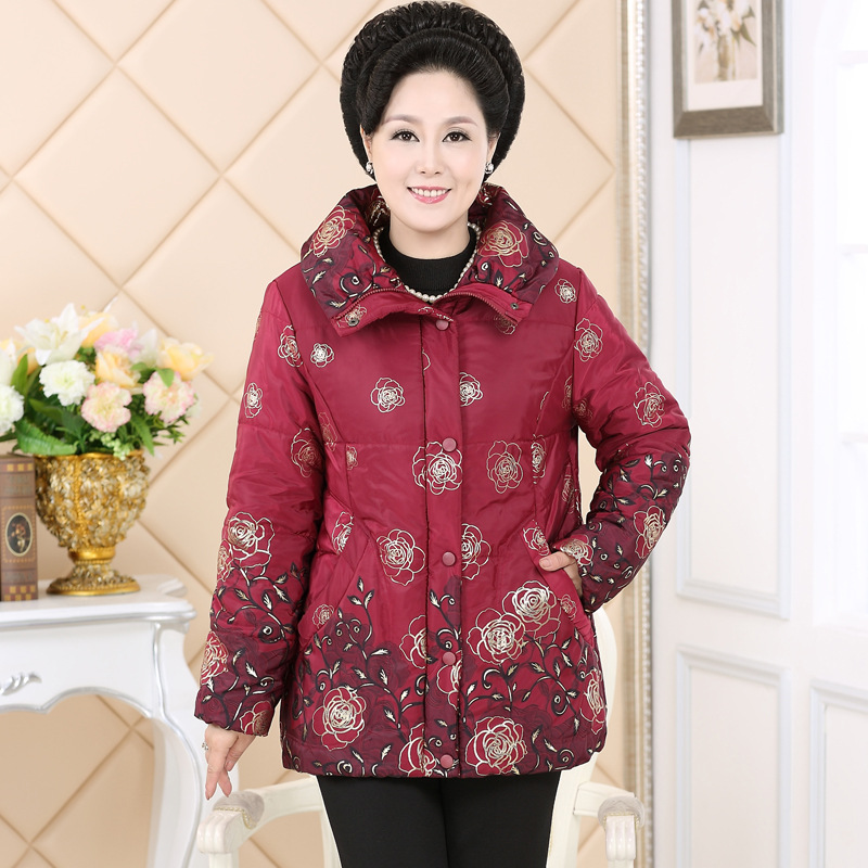 中老年女裝棉服 冬季休閑中年媽媽裝棉衣 中年印花純色保暖冬裝 /