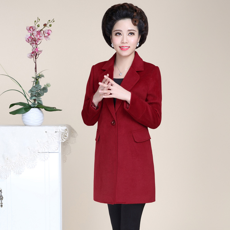 中老年女裝冬裝 毛呢大衣中年媽媽裝春秋羊毛大衣中長款羊絨外套 /