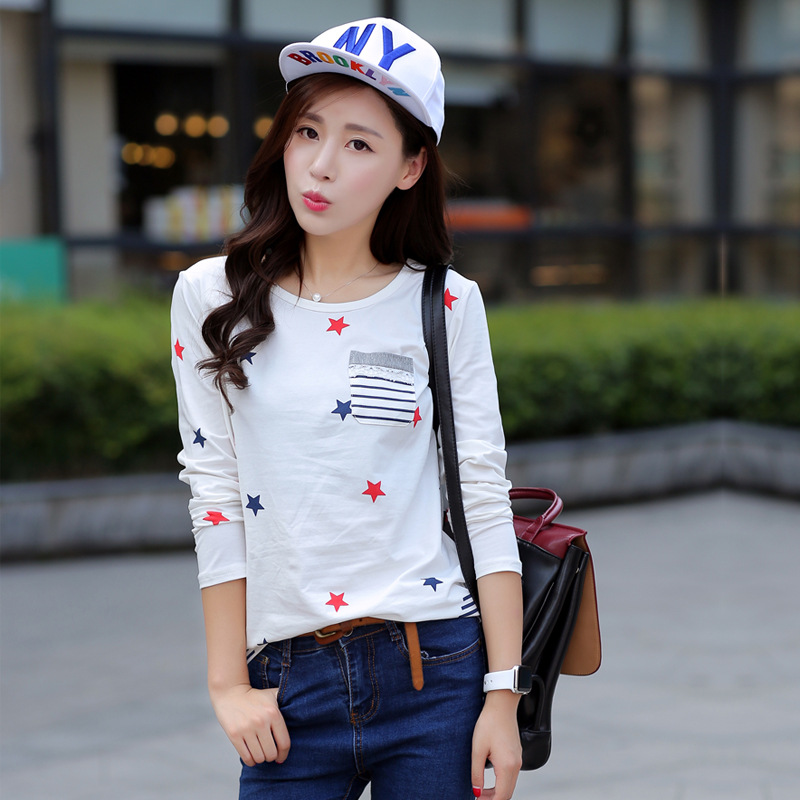 實拍2015秋冬新款幾何圖案寬松顯瘦打底衫女韓版圓領(lǐng)長袖女T恤 /