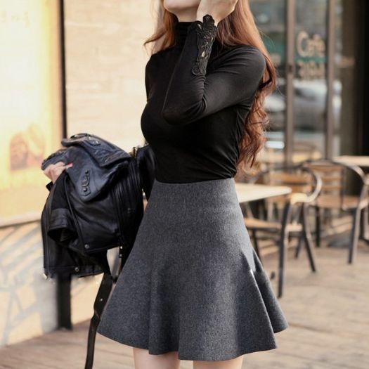 2015秋冬新款韓版品質(zhì)細毛線針織百搭半身裙荷葉邊百褶大擺短裙女 /