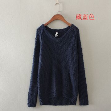 外貿(mào)原單15秋冬文藝套頭雞心領毛衣女寬松顯瘦棉線純色毛衣針織衫 /