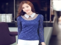 蕾絲衫花邊領(lǐng)2015秋冬加絨加厚保暖娃娃領(lǐng)蕾絲打底衫 /