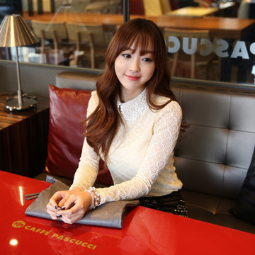 加絨加厚蕾絲衫2015秋冬裝新款韓版女裝保暖蕾絲打底衫高領(lǐng)上衣女 /