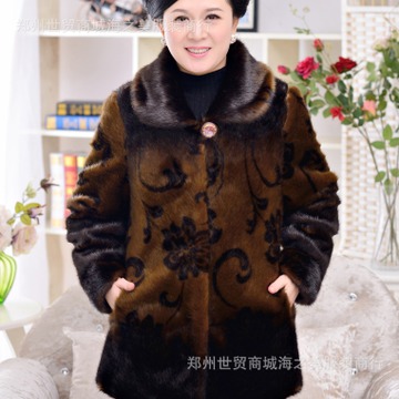 中老年女裝媽媽裝15年冬季新款仿貂絨大衣加肥長(zhǎng)袖大碼加厚毛領(lǐng) /