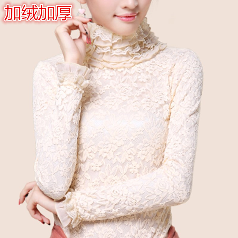 秋冬新款女裝打底衫高領(lǐng)長袖堆堆領(lǐng)蕾絲襯衫拼接雪紡衫女衫SL6319 /