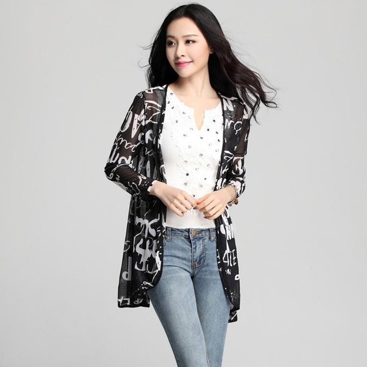 實拍新款女長袖中長款外搭大碼網(wǎng)紗開衫薄沙灘防曬衣SR7508 /