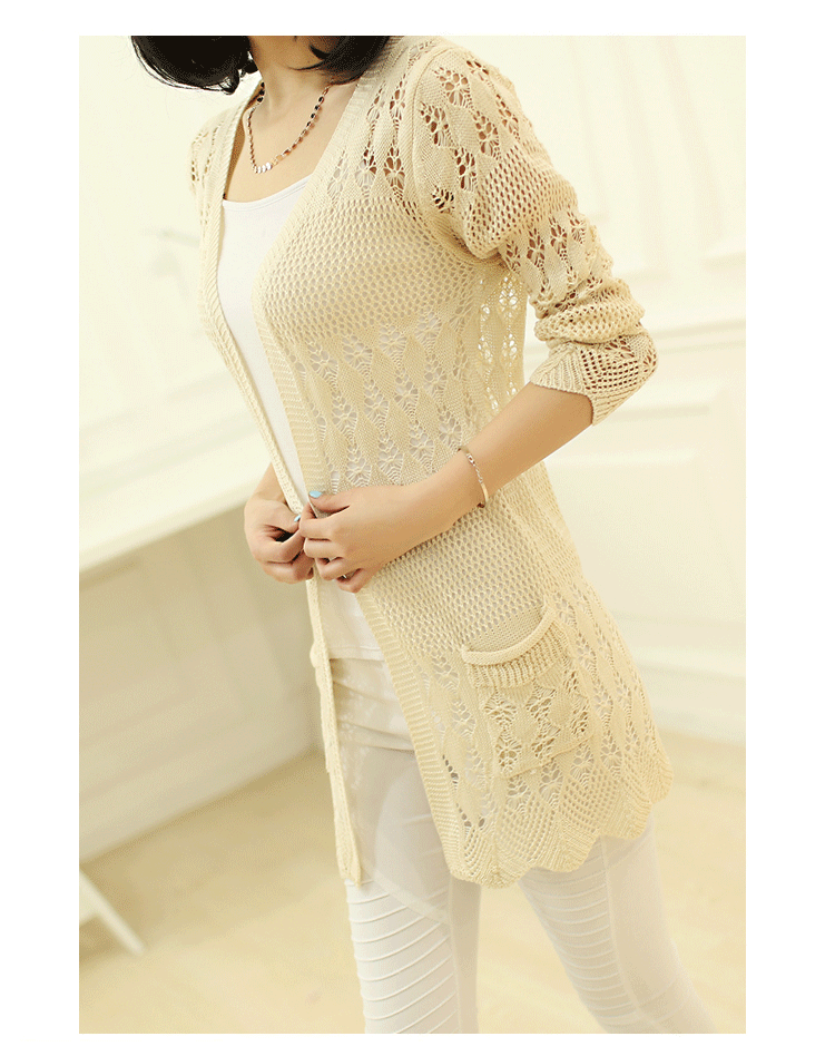 簡(jiǎn)介: 產(chǎn)地桐鄉(xiāng)濮院 主圖來(lái)源實(shí)拍有模特 貨源類(lèi)別現(xiàn)貨 是否庫(kù)存否 毛線(xiàn)粗細(xì)普通毛線(xiàn) 毛衫工藝針織 風(fēng)格韓版 圖案純色 款式開(kāi)衫 組合形式單件套 版型修身型 衣長(zhǎng)中長(zhǎng)款(65cm<衣長(zhǎng)≤80cm) 衣門(mén)襟暗扣 領(lǐng)型V字領(lǐng) 袖型常規(guī)袖 袖長(zhǎng)九分 厚薄薄 流行元素鏤空 工藝高溫定型 上市年份/季節(jié)2015春季