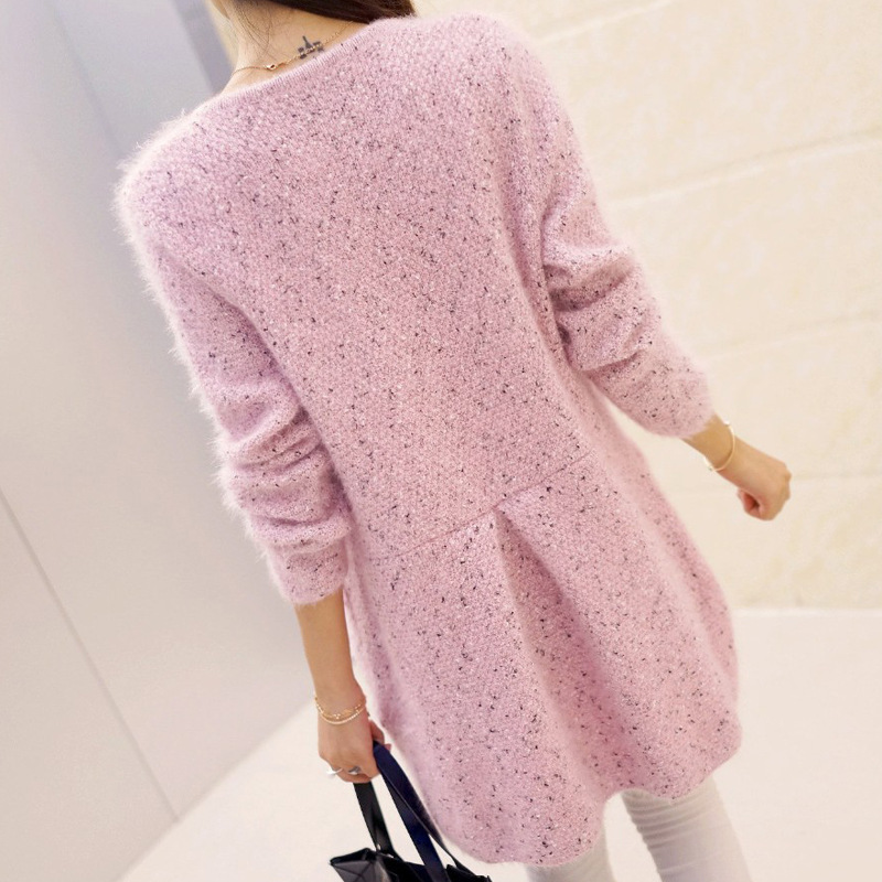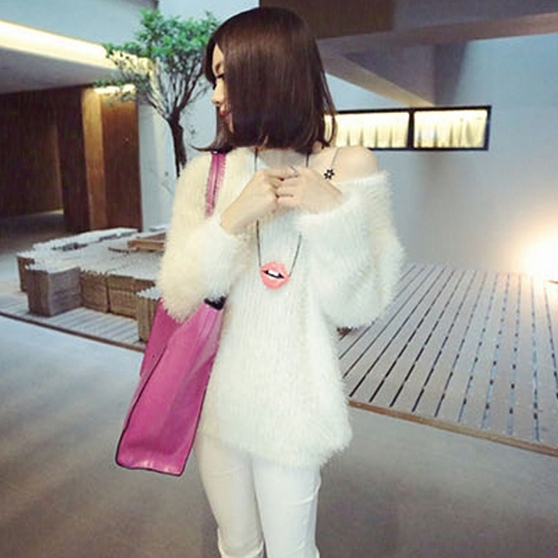 2015秋季新品套頭圓領(lǐng)長毛馬海毛毛衣女韓版中長款簡約針織打底衫 /