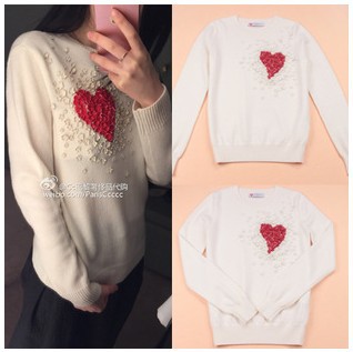 預(yù)定 2015歐洲大牌早秋新款 桃心立體花 華倫家限量愛心刺繡毛衣 /
