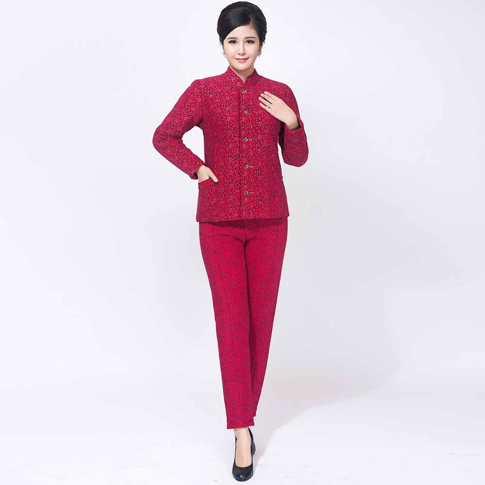 中老年女裝棉衣冬裝棉襖老年外套大碼媽媽裝立領棉服一整套新款 /