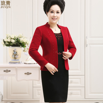 高端婚宴媽媽裝媽媽禮服 婚禮新娘秋冬季加厚保暖羊毛兩件套裝 /