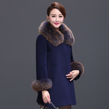 狐貍毛領毛呢外套中年女裝 2015秋冬新款媽媽裝呢子大衣 /