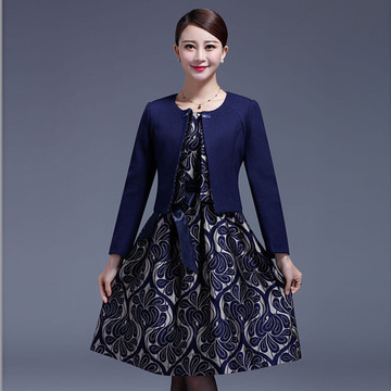 中老年女裝秋冬婚禮媽媽裝 長袖高檔連衣裙秋兩件套裝女實拍 /
