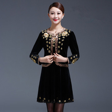 實拍中老年秋裝婚宴婚禮服 媽媽裝兩件套裝高檔金絲絨連衣裙 /