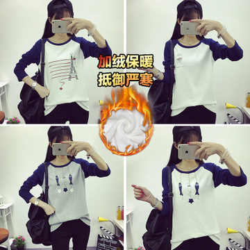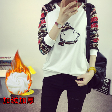 長袖t恤女款2015冬款裝新品上衣 加絨打底衫韓版卡通印花女裝批發(fā) /