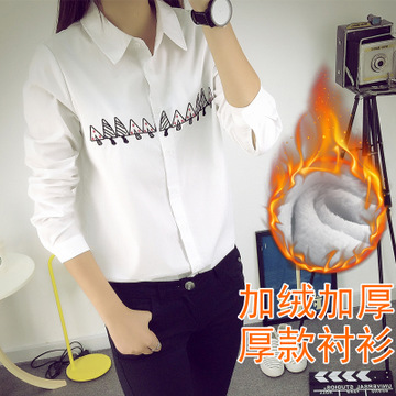 加絨襯衫女長袖冬季大碼加厚保暖白襯衣韓版中長款職業(yè)女士寸衫潮 /