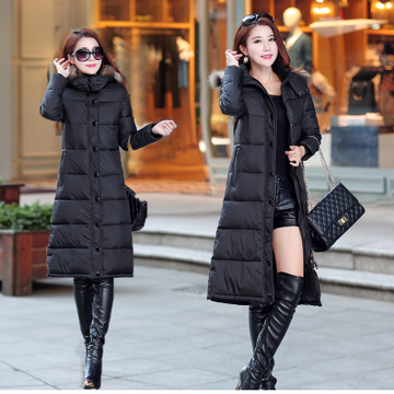 2015最新款羽絨棉服連帽修身棉衣女中長款大毛領加厚大碼外套 /