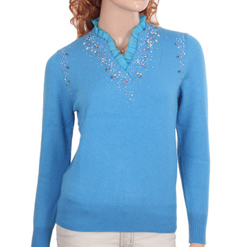 羊絨衫女士V領(lǐng)打底衫大碼修身女針織衫新款女裝時尚毛衣2015新款 /