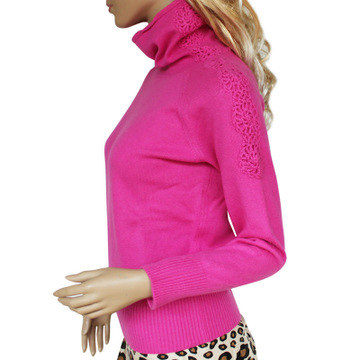 羊絨衫女式毛衣純色修身 高領(lǐng)毛衣女士打底毛衣手工針織勾花批發(fā) /