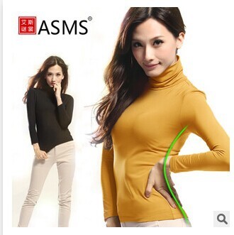 2015秋冬新款上衣莫代爾高領(lǐng)打底衫女長袖女修身T恤工廠批發(fā) /
