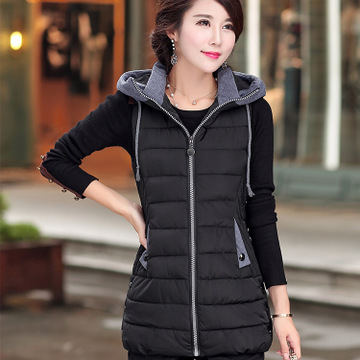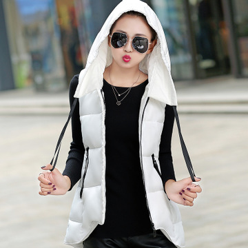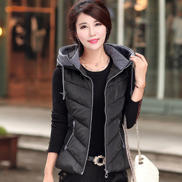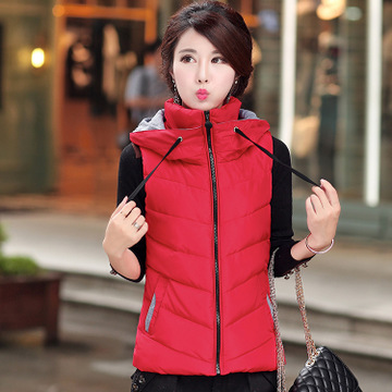 2015秋冬新款棉馬甲 不規(guī)則下擺翻領(lǐng)連帽修身保暖女士羽絨棉馬甲 /