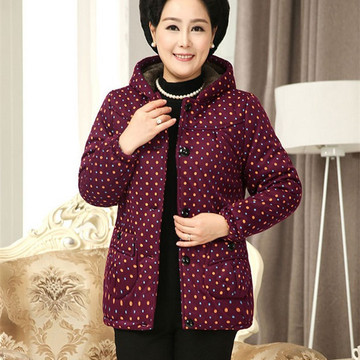 中老年女裝棉服外套點(diǎn)點(diǎn)加絨加厚大碼媽媽裝棉衣冬裝60歲奶奶棉襖 /
