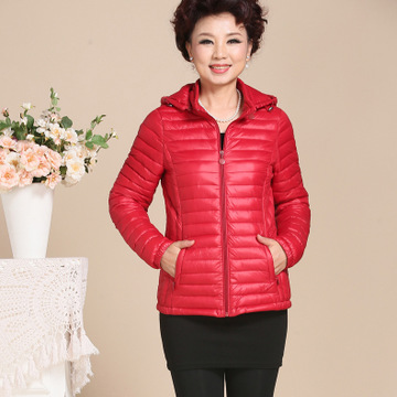 中老年女裝40-50媽媽裝輕薄羽絨棉衣短款帶帽棉服小棉襖大碼冬裝 /