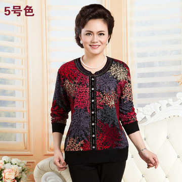 2015春裝新款中老年女裝打底衫圓領(lǐng)媽媽毛衣開(kāi)衫春秋老人針織衫 /