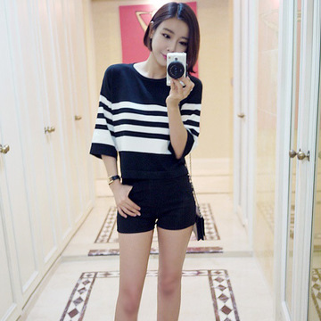 阿里巴巴批發(fā)網(wǎng)優(yōu)質(zhì)女裝針織打底衫寬松條紋顯瘦T恤2015新款中袖 /