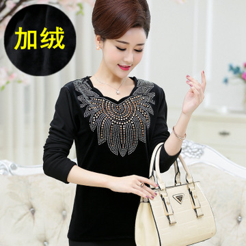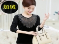 冬裝新款中老年女裝金絲絨打底衫媽媽裝大碼厚加絨保暖網(wǎng)紗T恤衫 /