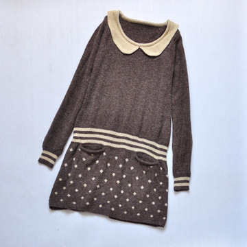外貿(mào)原單羊毛衫中長(zhǎng)毛衣裙日單毛針織衫娃娃領(lǐng)連衣裙秋冬毛衣 /