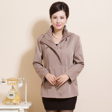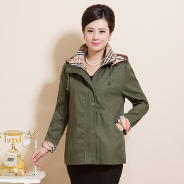 春裝新款 中老年風(fēng)衣 春秋款休閑女裝 時尚中年風(fēng)衣 媽媽連帽外套 /