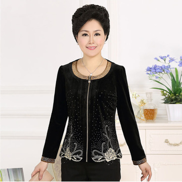 2015中老年女裝春裝外套媽媽裝新款時尚上衣中年女士長袖絲絨修身 /