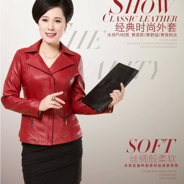爆款2014熱賣秋裝新款PU皮上衣媽媽裝女裝皮衣中老年時尚短款外套 /