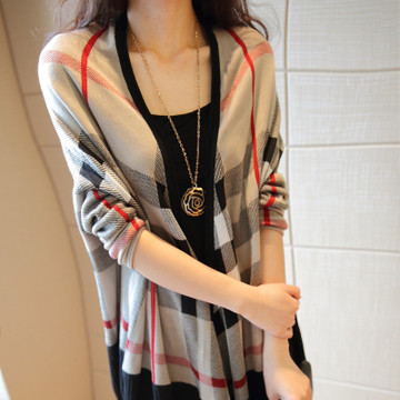 2015春裝新款女士披肩 格子蝙蝠袖斗篷 大碼女裝開衫批發(fā) /
