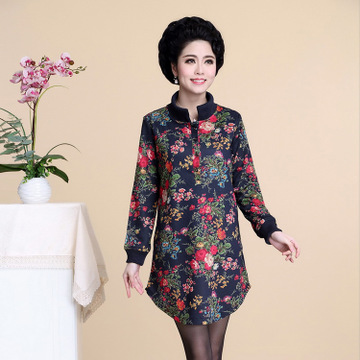 2015秋季新款媽媽裝連衣裙 時尚中長款大碼中老年女裝碎花裙批發(fā) /