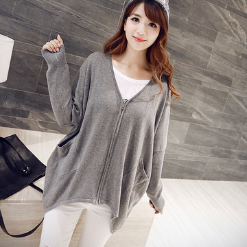 2015秋冬新款針織衫韓版大碼寬松開衫中長款加厚毛衣外套女 /