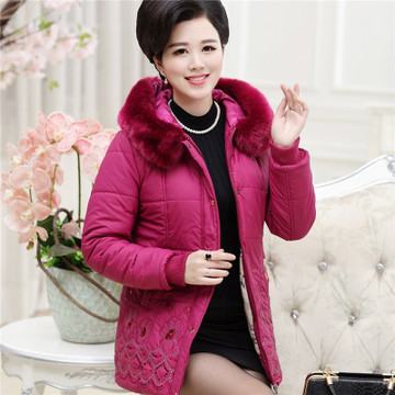 中老年新款媽媽裝棉衣外套短款加厚中老年女裝棉服帶帽毛領(lǐng) /