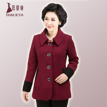 2015年春節(jié)喜宴酒紅新款中老年女裝外套羊毛呢外套女媽媽裝結(jié)婚 /