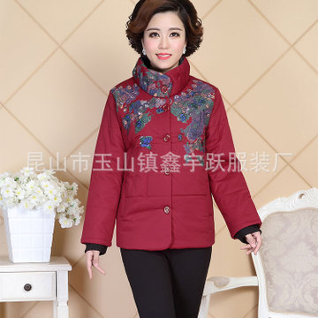 2015花色酒紅色秋冬款中老年媽媽裝衣大碼女裝立領(lǐng)印花棉服外套 /