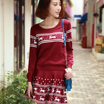 2015秋裝女韓版新品長(zhǎng)袖毛衣兩件套打底針織衫包臀修身套裝裙潮 /