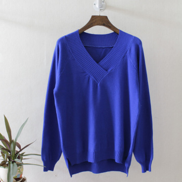 2015韓版秋季新品寬松大碼女針織衫純色套頭V領(lǐng)長(zhǎng)袖冬款打底毛衣 /