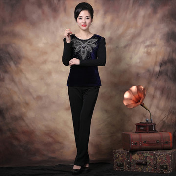 中老年新款荷花保暖內(nèi)衣女裝加厚加絨蕾絲中年媽媽裝圓領(lǐng)打底衫女 /