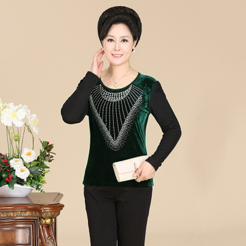 中老年冬裝加絨加厚長袖T恤秋上衣中年人媽媽保暖內(nèi)衣打底衫 /