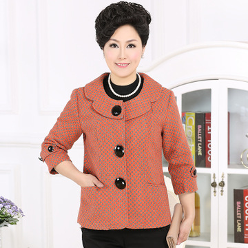 包郵中老年毛呢外套短款女春季新款媽媽裝 中年修身中袖小西裝女 /
